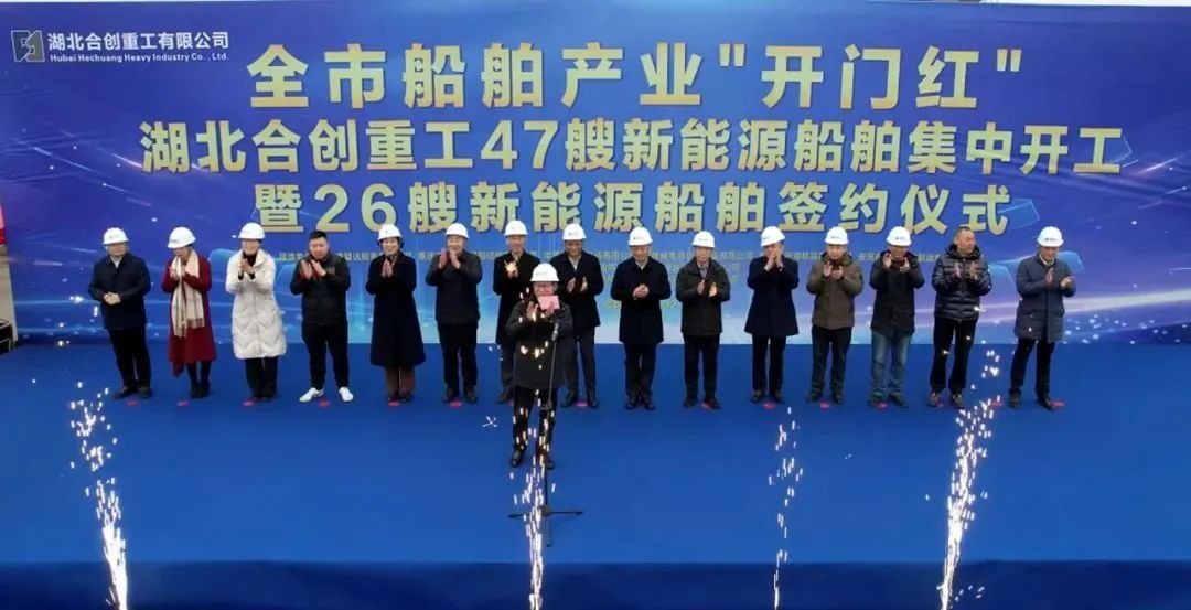 湖北合创重工47艘新能源船舶褪色开工暨26艘新能源船舶签约